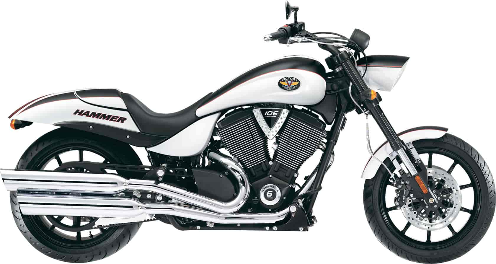 Modern American muscle with custom paint and blacked-out wheels inspires the 2010 Victory Hammer® S Motorcycle. Are you feeling the need? Then try this: a wide 250mm rear tire, 97 horsepower, 113 foot-pounds of torque, inverted front forks, dual-disk front brakes & a speedo & tach — standard. These performance features make such a strong statement that fully expresses the Hammer® S.