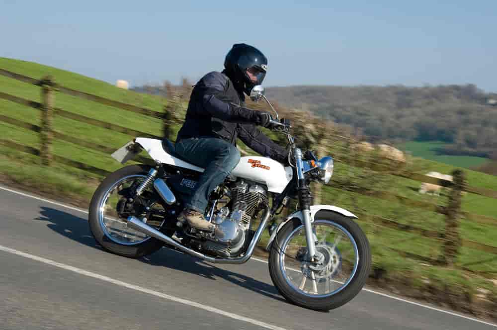The design team at Watsonian also gave the rear end of the bike a radical makeover, replacing the twin saddle with a flat track style glass fibre seat unit, incorporating a discrete tail light and chrome mini indicators.