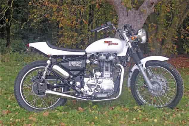 Due in showrooms early next year, the Royal Enfield Fury will sell for £5500 in black and at £5895 in blue and white colour schemes.