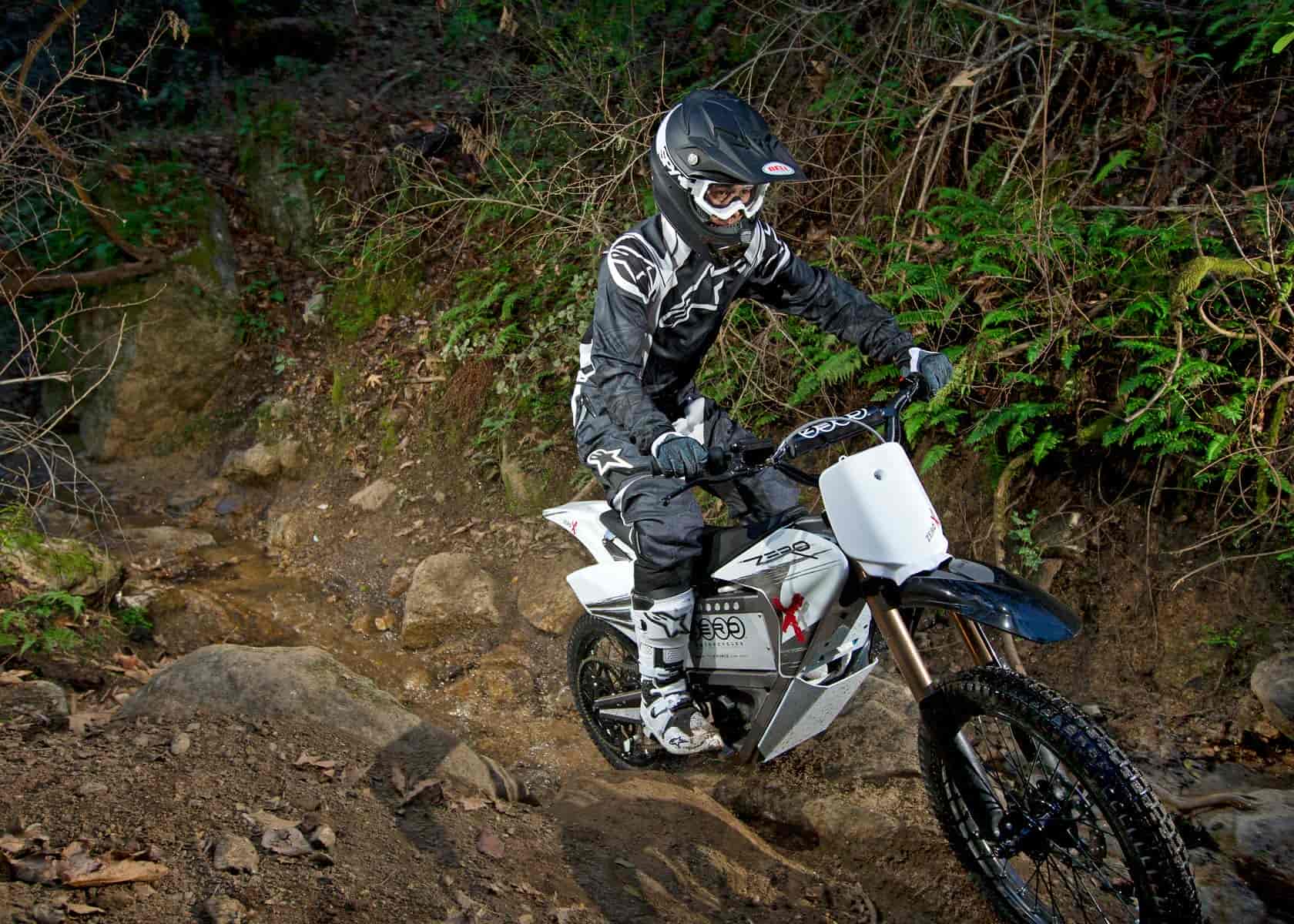 Built from the ground up for extraordinary handling, the fully electric Zero X uses a revolutionary powertrain to open up previously unthinkable trail riding possibilities. With instant torque from a standstill, no shifting and a low weight, the Zero X is a high performance electric motorcycle that pushes technical trail riding to ambitious new levels. Direct drive gearing and weight-optimized components combine to form a stealthy machine that aggressively races up hills, flies over jumps and cuts through streams.
