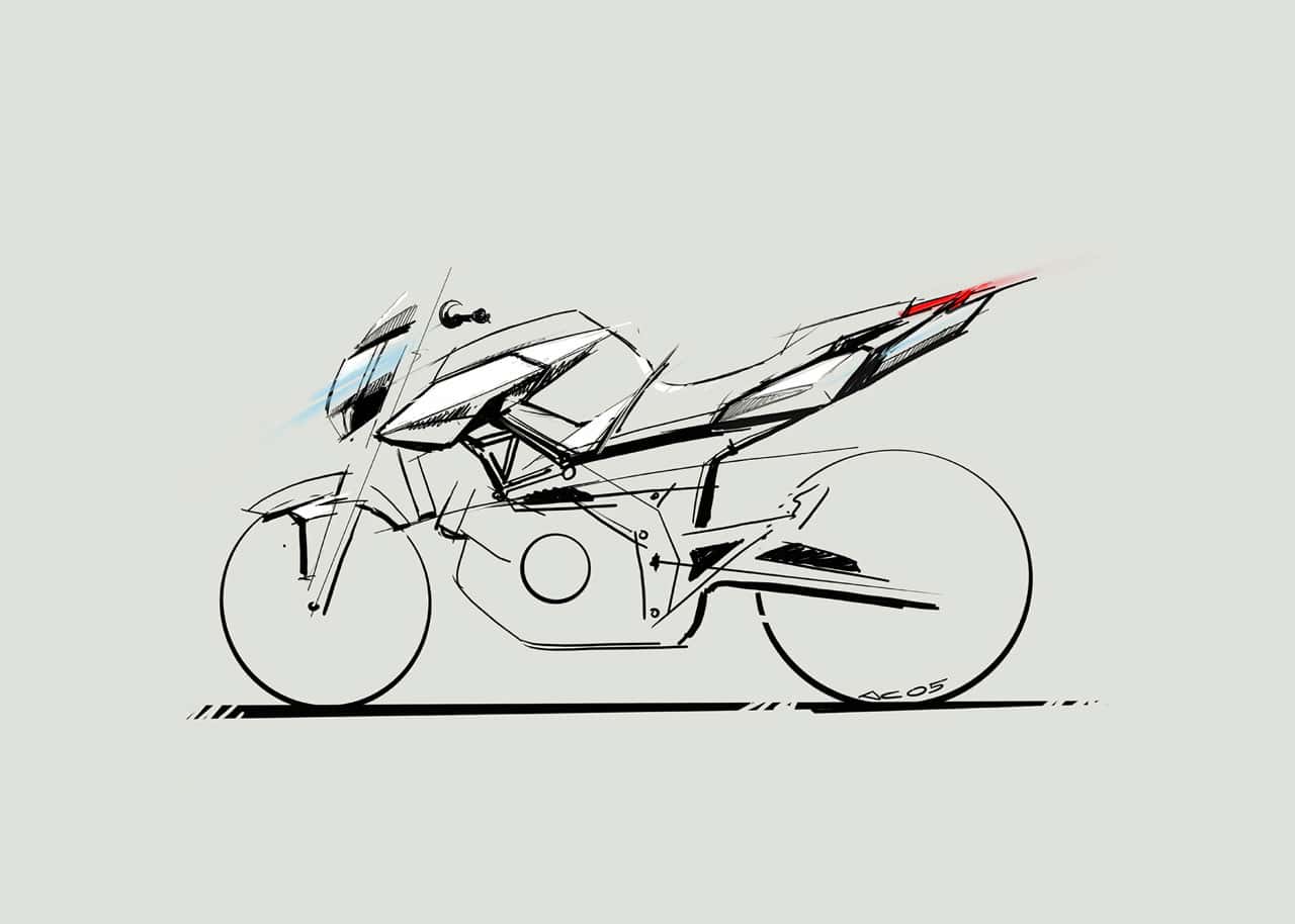 The tank-seat-tail assembly further emphasises the compactness of the bike. The rider becomes one with the machine, perfectly integrated in the short, agile, and sporty bike. The strongly tapering tail also incorporates the twin exhaust with triangular silencers, a feature which makes the design even more aggressive, while keeping weight distribution highly symmetrical.