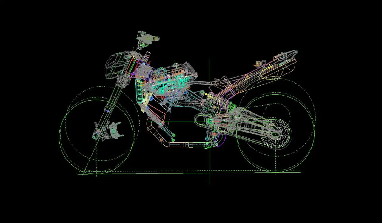 The design solutions associated with the 90° V twin led to the development of a rational and reliable mixed steel trellis and aluminium side plate frame.