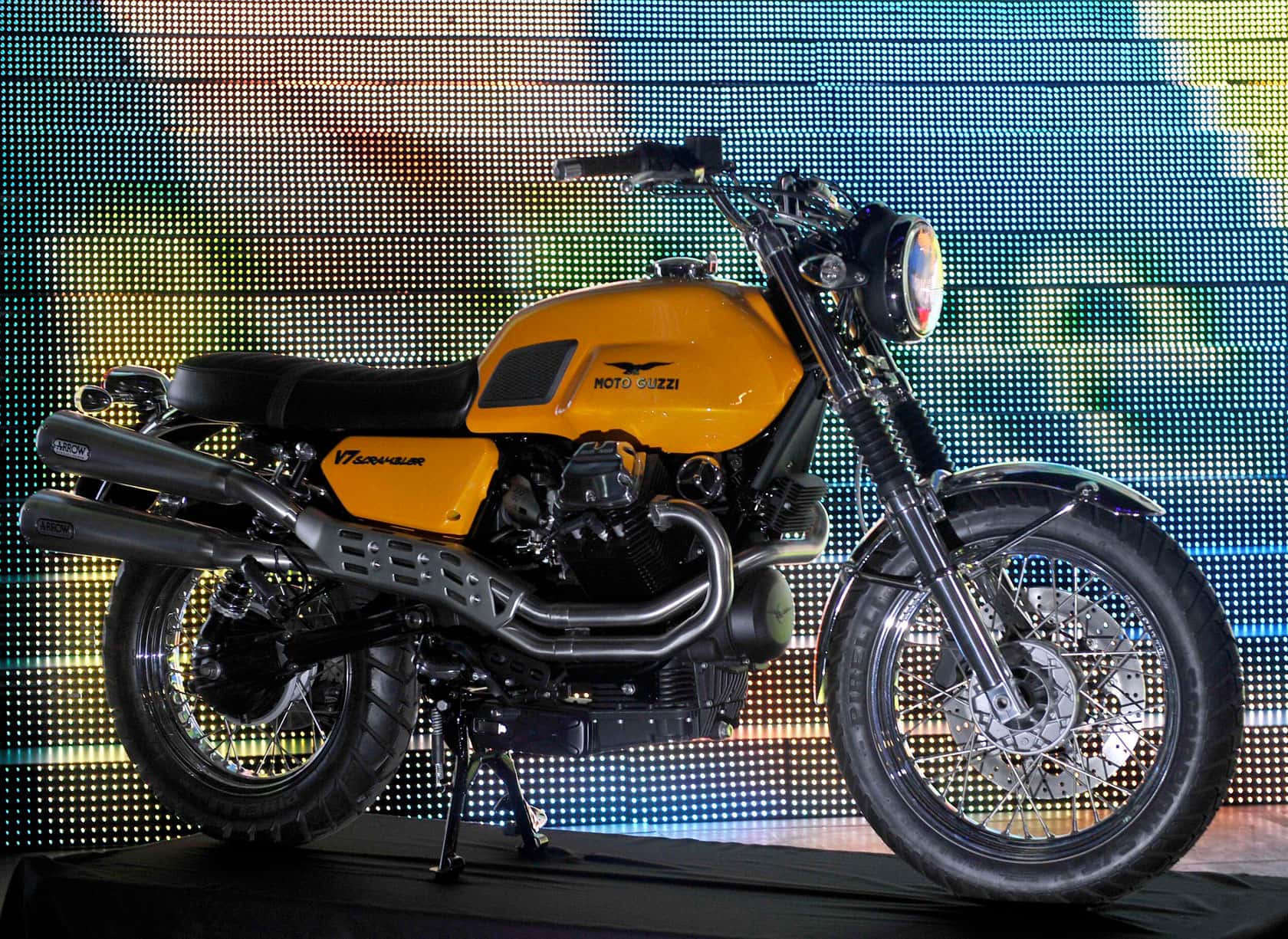 31 January 2011 – A brand new white Moto Guzzi California and a Scrambler version of the V7 provided an exciting double surprise from Moto Guzzi at the Piaggio Group international dealer meeting in Monte Carlo on 27 and 28 January.