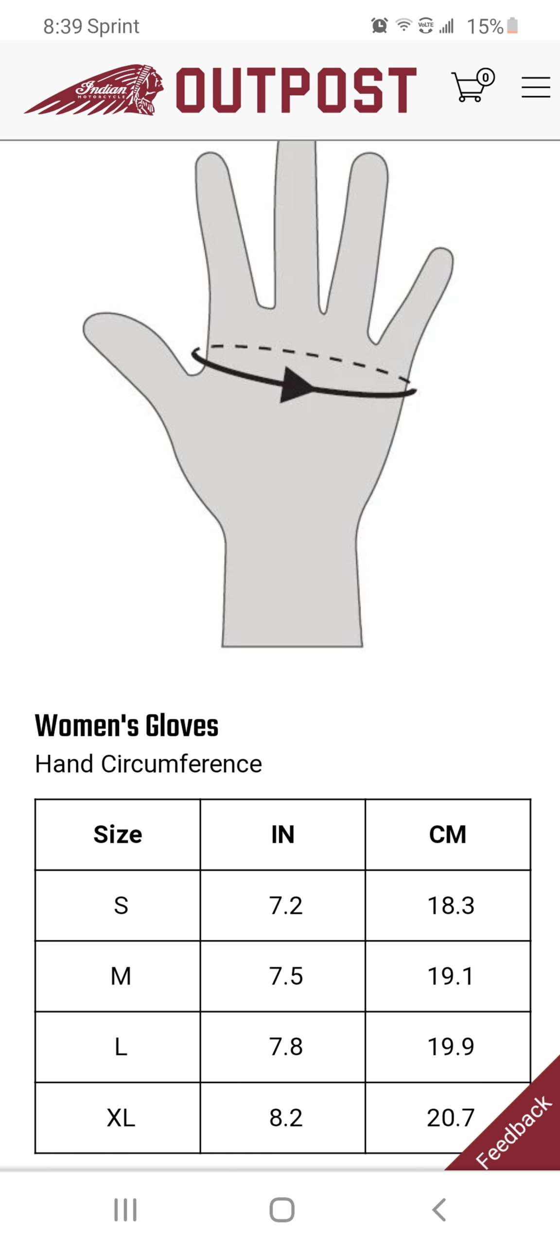 I always have my fingernails manicured, usually with reasonably long tips. I’m unwilling to give up that simple pleasure and have accepted the challenge when sizing riding gloves. Indian’s website provide’s a sizing chart for the classic riding gloves, using only the palm measurements without finger length. My palm width measures exactly 8 inches, putting me somewhere between a size Large and an XLarge. The tag on my gloves reads as follows ‘L.XL.’ While the finger length includes room for my nail length plus some, the palm fit is tight. These findings are the opposite of my usual results with other gloves. When you watch the video, you will see the bit of difficulty I have slipping them on and pulling them off.