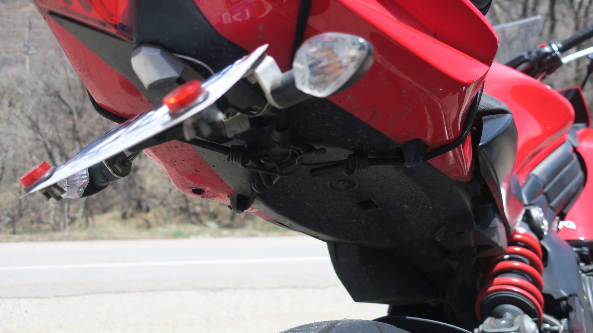 On the underside of the Ninja’s tailpiece, there are two little nubs you could almost call hooks. That’s what Kawasaki intended them for anyway, but to be honest they look more like mating spurs on a python. Or Frankenstein’s neck bolts. Either way, trying to attach two bungee hooks to each one was a lesson in futility. I could hook them well enough, but any bounce or jostle would be enough to release the snappin’. Bonus points if you caught that joke! Anyway, those little nubbins were no good for mounting. Likewise with the passenger peg bracket, which was much too far away from the tail piece. That put the score at 0-2, and there is nowhere else on the Ninja you could conceivably hook to. I was ready to call it a complete failure.