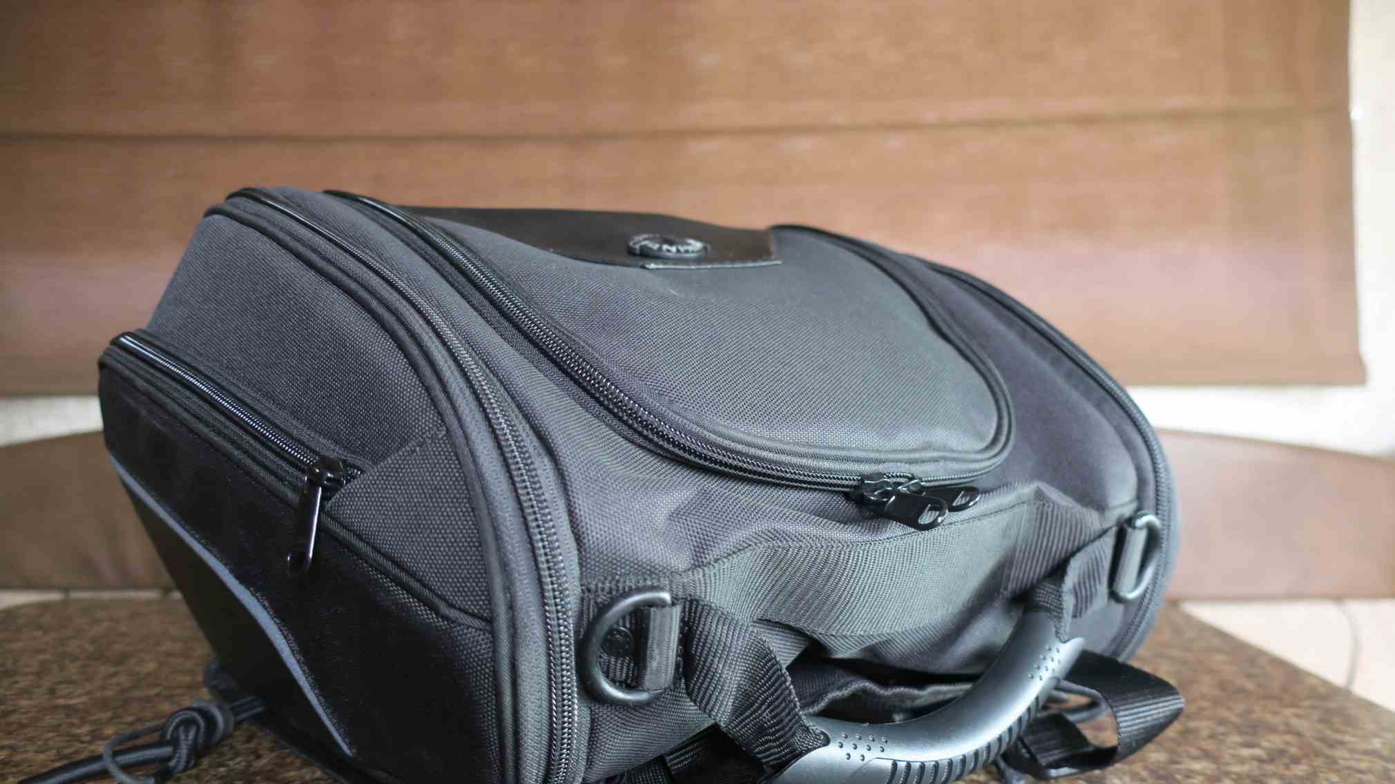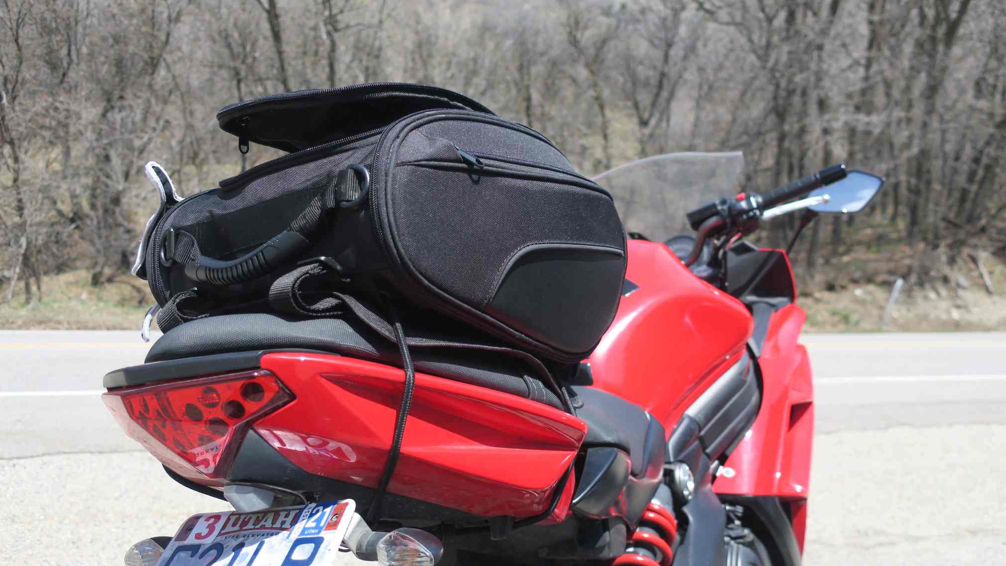 On my 2011 Kawasaki Concours, I was unable to mount the bag at all. Pillion or luggage rack, there simply weren’t any mounting points I could reach with the hooks. A lot of that is just the design of the Concours. Everything is chunky angles and aggressive lines, no hooks or nice tubular brackets or anything. So the bag gets a pass on the Concours, and that’s fair because the Connie is a sport touring bike anyway.