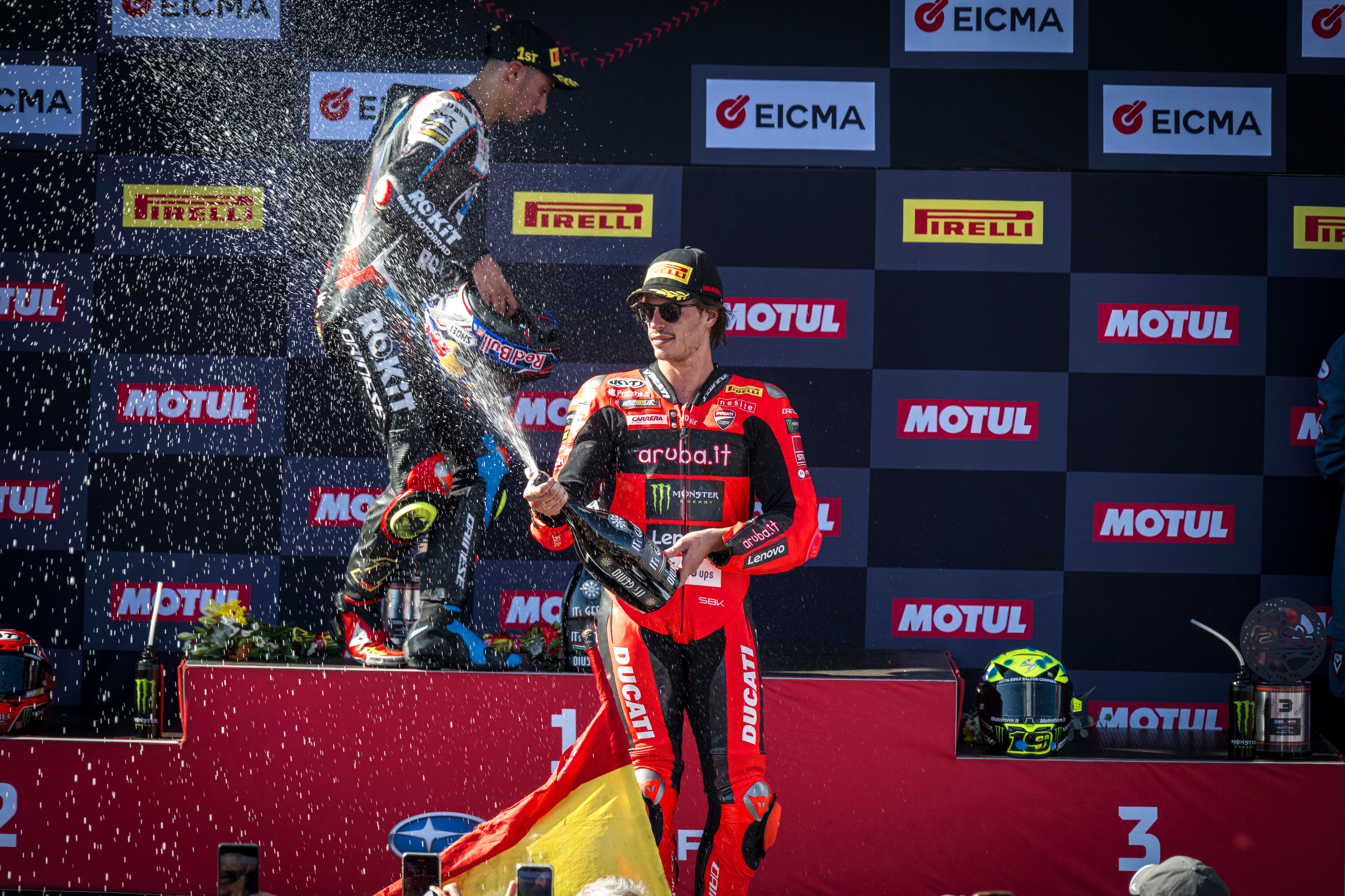 The Aruba.it Racing – Ducati team closed Race 1 of the EICMA Estoril Round with a double podium finish for Nicolò Bulega (P2) and Álvaro Bautista (P3).